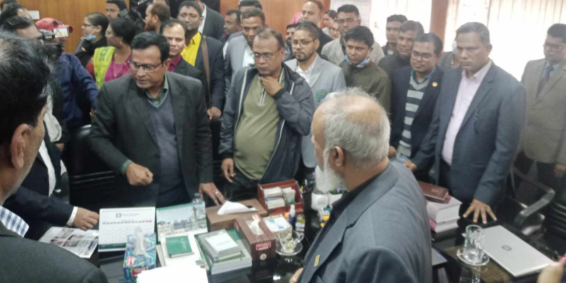 এ নিয়ে বঙ্গবন্ধু পরিষদ শিক্ষক ইউনিট এক বিবৃতিতে পাঠান গণমাধ্যমে। বিবৃতিতে বলা হয়, উপাচার্য ও শিক্ষকদের আলোচনা শুরুর কয়েক মিনিটের মধ্যেই উপাচার্যের অফিস কক্ষে ঢুকে অকথ্য ভাষায় গালিগালাজ শুরু করে বহিরাগত ও বিশ্ববিদ্যালয়ের কিছু শিক্ষার্থীরা বলে অভিযোগ।