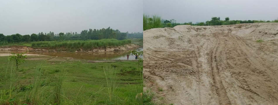 রবিবার  (৬ সেপ্টেম্বর) দুপুরে সরেজমিনে গিয়ে এ তথ্য পাওয়া গেছে । উপজেলা ঘনশ্যামপুর কালী মন্দির এলাকায় প্রায় এক লক্ষ টাকা মূল্যের বালু উত্তোলন করে জমিয়ে রাখা হয়েছে ।
