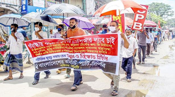 এ সময় বিক্ষোভ মিছিলে বিনা মূল্যে করোনা পরীক্ষা ও চিকিৎসার ব্যবস্থাকরণ, ডেটল, স্যাভলন, হ্যান্ড স্যানিটাইজার, মাস্ক, সাবানসহ সকল স্বাস্থ্য সুরক্ষা সামগ্রীর প্রাপ্তি নিশ্চিতকরণের দাবিতে বিক্ষোভ মিছিল করেছে বাংলাদেশের কমিউনিস্ট পার্টি গাইবান্ধা জেলা শাখা।
