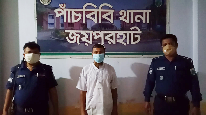 শনিবার রাতে জয়পুরহাট সদর উপজেলার খাসপাহুনন্দা এলাকায় তাকে গ্রেফতার করে। গ্রেফতারকৃত আসামী সদর উপজেলার পেঁচুলিয়া গ্রামের ফজলুর রহমানের ছেলে সুলতান মাহমুদ (৩২)।