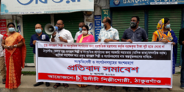 ঠাকুরগাঁও প্রতিনিধিঃ ঠাকুরগাঁওয়ে জেলা উদীচীর ডাকা অস্বচ্ছল শিল্পী ও সাংস্কৃতিক সংগঠনের সরকারি সহায়তার অনুদান তালিকা সংশোধন ও সংগঠন অন্তর্ভভুক্তকরণের দাবিতে মানববন্ধন ও প্রতিবাদ সমাবেশ প্রত্যাক্ষাণ করেছে জেলার সাংস্কৃতিক সংগঠন ও প্রকৃত সাংস্কৃতিক কর্মী এবং কলাকুশলীরা।