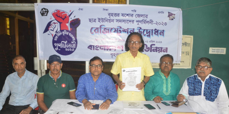 বাংলাদেশ ছাত্র ইউনিয়ন, বৃহত্তর যশোর জেলা (যশোর, ঝিনাইদহ, মাগুড়া,নড়াইল) পুণর্মিলনীর লক্ষে “এসো মিলি মুক্তির পতাকায়” এই স্লোগান ধারণ করে রেজিস্ট্রেশন কার্যক্রম উদ্বোধন করা হয়েছে।