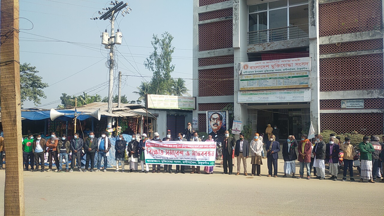 ২২ ডিসেম্বর মঙ্গলবার দুপুরে শিবদীঘি মুক্তিযোদ্ধা সংসদ সংলগ্ন মূল সড়কের পাকা রাস্তায় দাঁড়িয়ে মুক্তিযোদ্ধাগণ মানববন্ধন ও প্রতিবাদ সমাবেশে অংশ নেন।