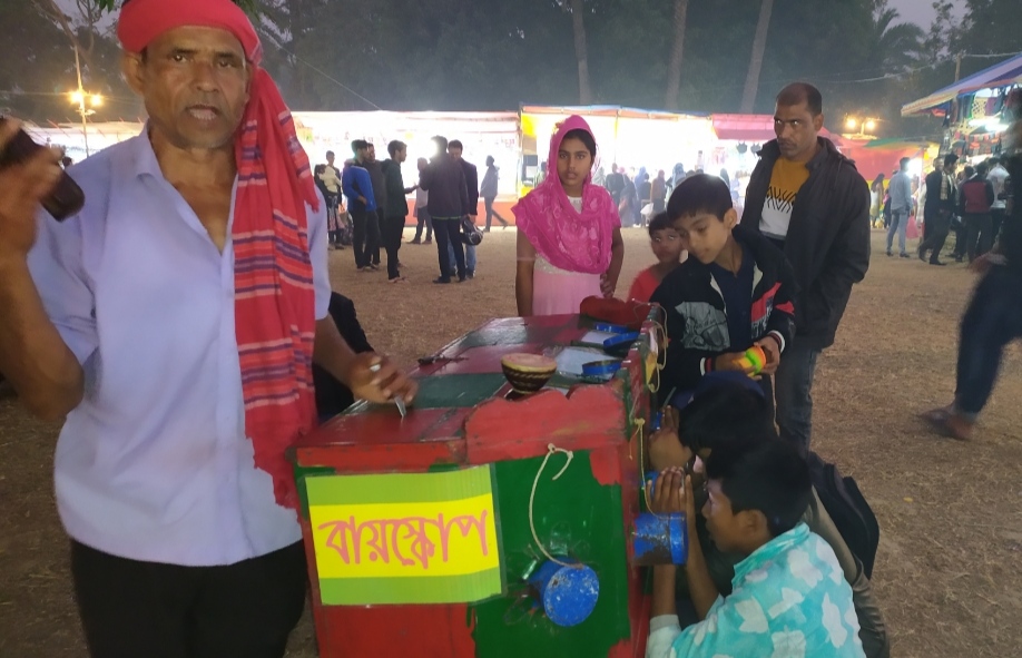 সোনারগাঁ প্রতিনিধিঃ বায়স্কোপ গ্রামবাংলার একটি ঐতিহ্য। এই ঐতিহ্য ধরে রেখেছে গ্রামবাংলার গুটি কয়েক লোক। এদের মধ্যে আঃ জলিল মন্ডল একজন। তিনি রাজশাহী জেলার বাগমারা উপজেলার। তিনি বিগত চার বছর ধরে নারায়ণগঞ্জ জেলার বাংলাদেশ লোক ও কারুশিল্প ফাউন্ডেশনে মেলা চলাকালীন সময়ে বায়স্কোপ প্রদর্শন করে আসছেন। বায়স্কোপ প্রদর্শন করে তিনি দৈনিক ৪০০থেকে৫০০ টাকা আয় করেন যা দিয়ে তার সংসার চালানো দূরের কথা সোনারগাঁয়ে থাকা খাওয়ার ব্যবস্থাই ঠিক মত হয় না। সরকারি পৃষ্ঠপোষকতার কথা উঠলে তিনি আক্ষেপ করে বলেন চার বছর ধরেই পরিচালক সাহেবকে বলে আসছি কোনো কাজই হচ্ছে না। রবীন্দ্রগোপ সাহেব থাকতে দেই দেই বলেও পৃষ্ঠপোষকতার ব্যবস্থা করে দিলো না।বর্তমান পরিচালক তিনিও বলিতেছেন করতে থাকো পরে দেখছি। এভাবে দেখতে দেখতে আমরাতো না খেয়ে মরে যাবো। কথা বলার এক ফাঁকে তিনি বলেন তাঁর সন্তানকে তিনি এ পেশায় নিয়োজিত করবেন না। মেলা পরিদর্শনের সময় রূপায়ন হাউজিং ইস্টেট লিঃ এর জিনিয়র এক্সিকিউটিভ অফিসার মোঃ আজহারুল ইসলাম বলেন, গ্রামবাংলার ঐতিহ্য বায়স্কোপ শিল্পটি বাঁচিয়ে রাখতে সরকারের পৃষ্ঠপোষকতা খুবই জরুরী।