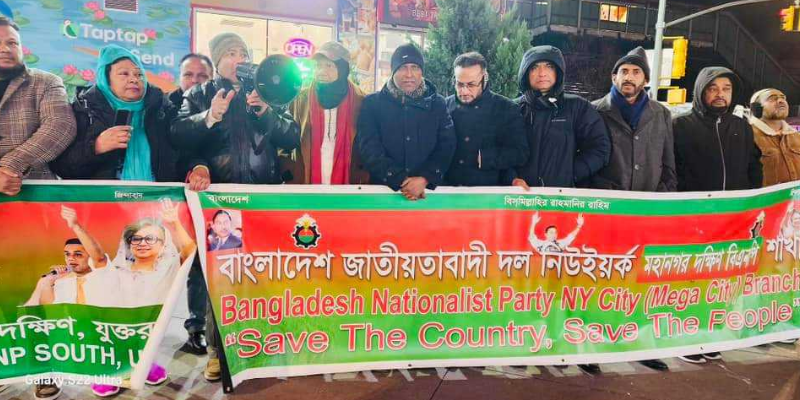 মানবাধিকার লঙ্ঘনের প্রতিবাদে নিউইয়র্ক মহানগর দক্ষিণ বিএনপির মানববন্ধন