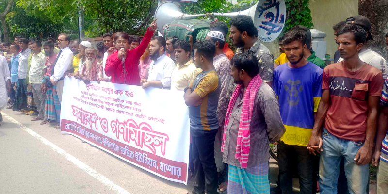 ব্যাটারি চালিত রিক্স-ভ্যান আটক বন্ধ করার দাবিতে যশোর প্রেস ক্লাবের সামনে সমাবেশ এবং গণমিছিল হয়েছে।