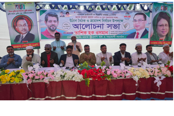 তারাব পৌর ৭নং ওয়ার্ড বিএনপি অঙ্গ ও সহযোগী সংগঠনের আয়োজিত আলোচনা সভায় সভাপতিত্ব করেন ওয়ার্ড বিএনপি সভাপতি সোলাইমান কবির। এতে প্রধান অতিথি হিসেবে উপস্থিত ছিলেন তারাবো পৌর বিএনপির সভাপতি তাশিক হক ওসমান।