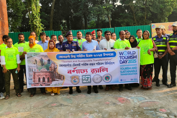 বিশ্ব পর্যটন দিবস উপলক্ষে “সোনারগাঁয়ে টেকসই পর্যটক বান্ধব পরিবেশ বিনির্মাণ” শীর্ষক আলোচনা সভা ও র্যালি অনুষ্ঠিত হয়েছে।সোমবার বিকেলে বাংলাদেশ লোক ও কারুশিল্প ফাউন্ডেশনের লাইব্রেরির সভা আলোচনা সভা অনুষ্ঠিত হয়।