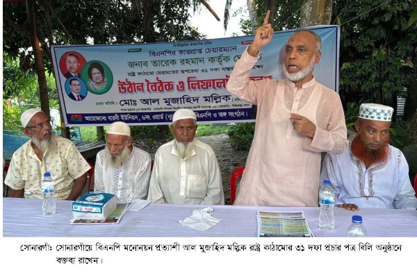 সোমবার বিকেলে নারায়ণগঞ্জের সোনারগাঁয়ের বারদি ইউনিয়নের নুনেরটেক এলাকায় সোনারগাঁ উপজেলা বিএনপির সহ-সভাপতি ও বিএনপি মনোনয়ন প্রত্যাশী আল মুজাহিদ মল্লিক তারেক রহমান ঘোষিত রাষ্ট্র কাঠামো ৩১ দফা প্রচার ও উঠার বৈঠকে প্রধান অতিথির বক্তব্যে এসব কথা বলেন।